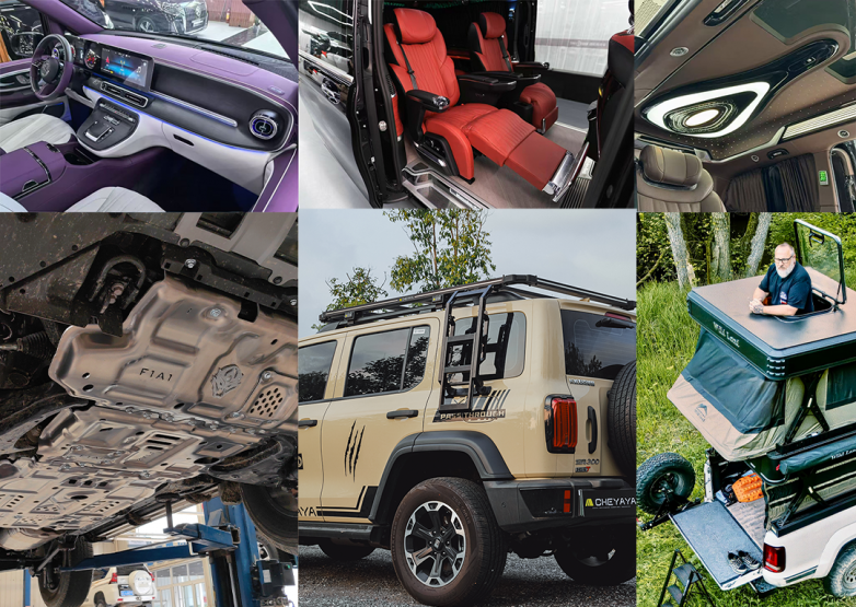 Featured Parts & Accessories:Aviation-style seats, welfare seats, carbon fiber seats, curtains, center console boxes, refrigerators, interior headliners, dashboards, roof-raising kits, smart cockpits, music headrests, leather/fabric upholstery, large screens, flooring, damping rods, stabilizer bars, underbody protection plates, exterior body kits, custom wheels, hard-shell rooftop tents, shock absorbers, storage magic boxes, headlights, roof lights, eco-friendly damping/sound deadening mats, eco-friendly acoustic insulation, wiring harnesses, soft tops, solar panels, inverters, DC-DC chargers, off-road shocks, pickup truck beds, truck caps, high-rise truck caps, trays, magic boxes, lighting, competition bumpers, wheels, tires, roof racks, ladders, wireless APP control systems, and more.